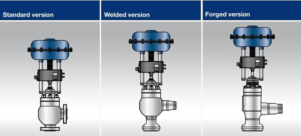 Een smeedstalen hoekuitvoering regelklep is ook leverbaar vanaf de maatvoering ≤ DN65 met laseinden. Een hoekuitvoering regelklep wordt veelal onder moeilijke bedrijfsomstandigheden, toepassingen met een zeer hoge ∆ P, ingezet.
